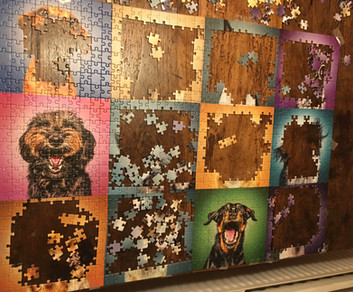 David købte et puslespil med 1000 brikker forrige sommer. Nu fik han lyst til at lægge det, og ind imellem kommer Luca eller jeg forbi og lægger en brik. I vinterferien var vi hos mormor og Ole i skønne Hornbæk. Vi hyggede med dejlige gåture ved vandet, brætspil - og Ole og David gik i gang med to nye puslespil :-)